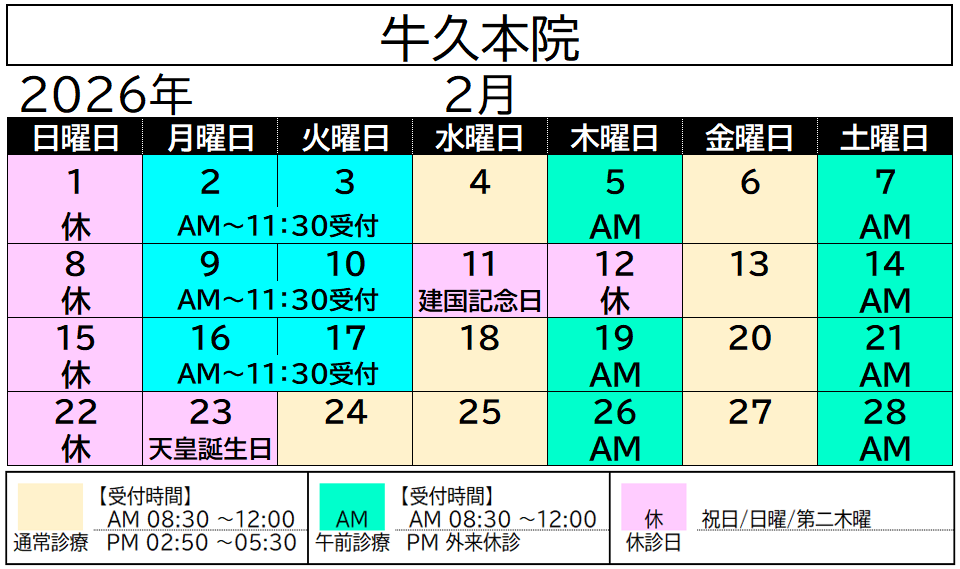 2026年(令和8年)2月の診察日についてお知らせ致します。